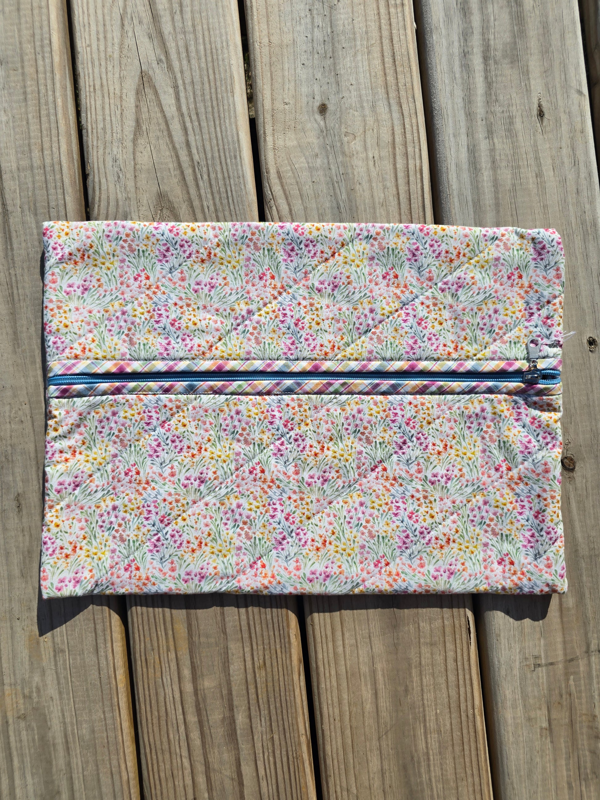 Light Floral cloth project bag. K Heinz Designz 2025. Size: 15.5" x 11.5". Handcrafted in Northwest Indiana.