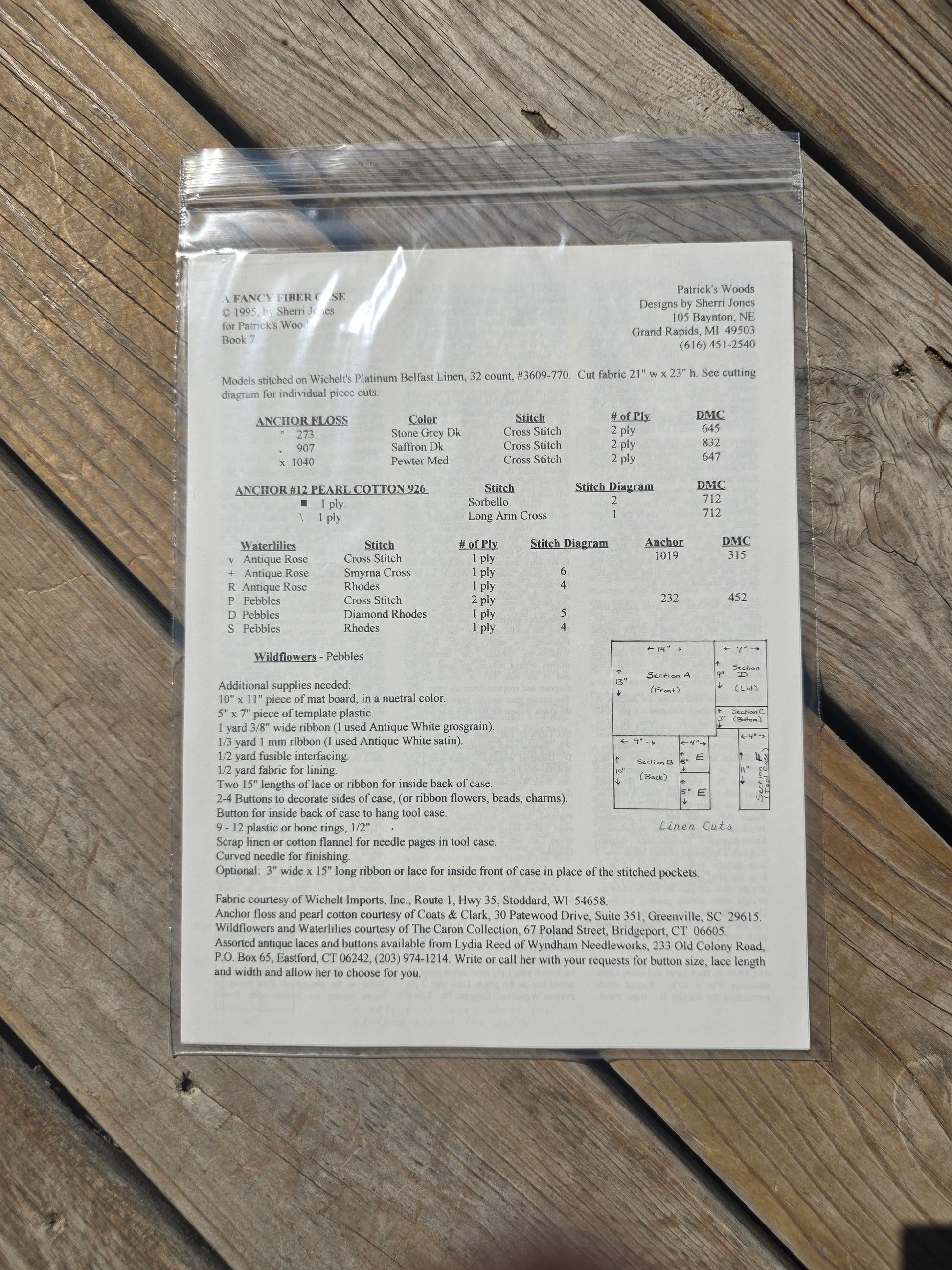 A Fancy Fiber Case, Book 7, cross stitch pattern. Patrick's Woods 1995. No stitch count listed in pattern. Estate find. Like new in original package.