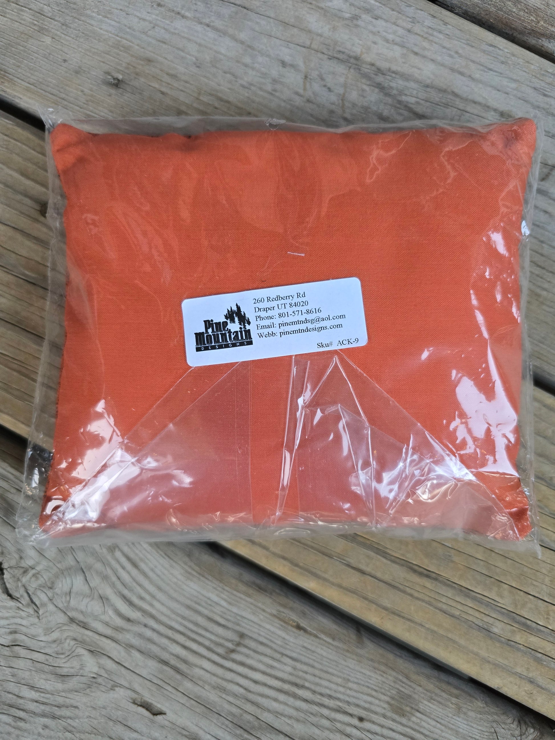Orange circle with black dots pillow blank. Pine Mountain Designs. Size: 8" x 7". Estate find. Like new in package.