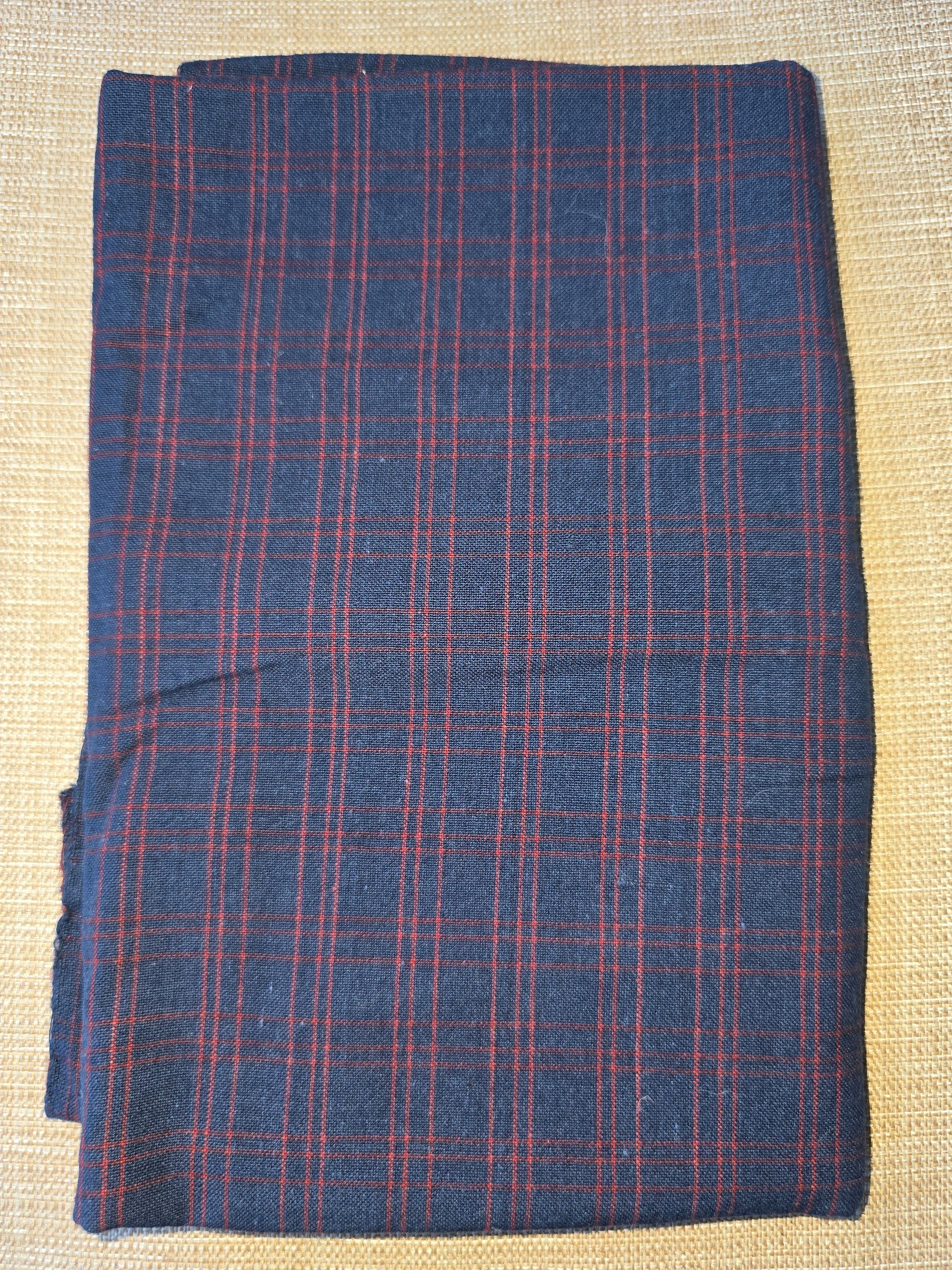 Navy and red plaid homespun fabric. Maker unknown. .36 yards by WOF. Estate find. Like new.