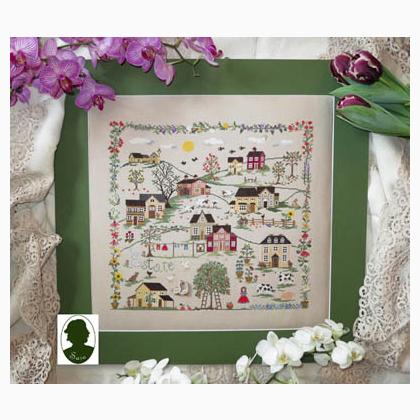 Estate - Ete - Summer cross stitch pattern with wood duck button. Sara. Stitch count: 280W x 263H. Estate find. Like new in package.