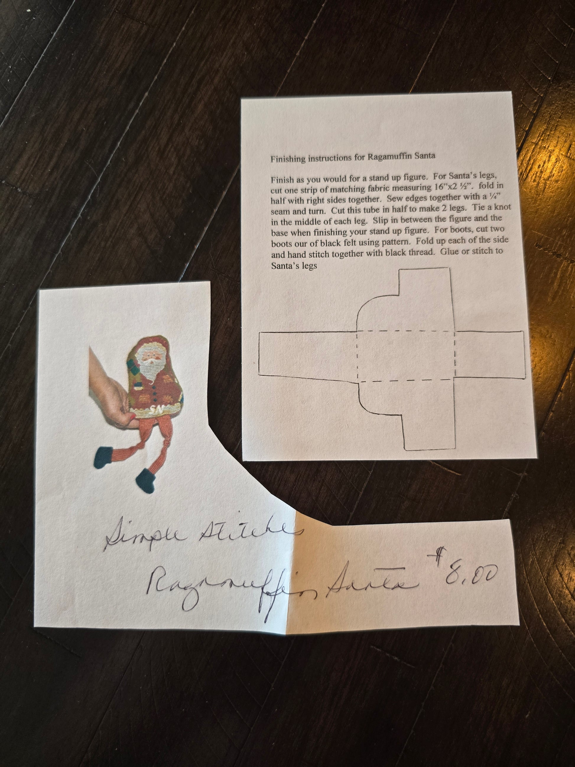 Ragamuffin Santa cross stitch pattern. Simple Stitches 2010. Stitch count: 74w x 90h. Estate find. Used condition.