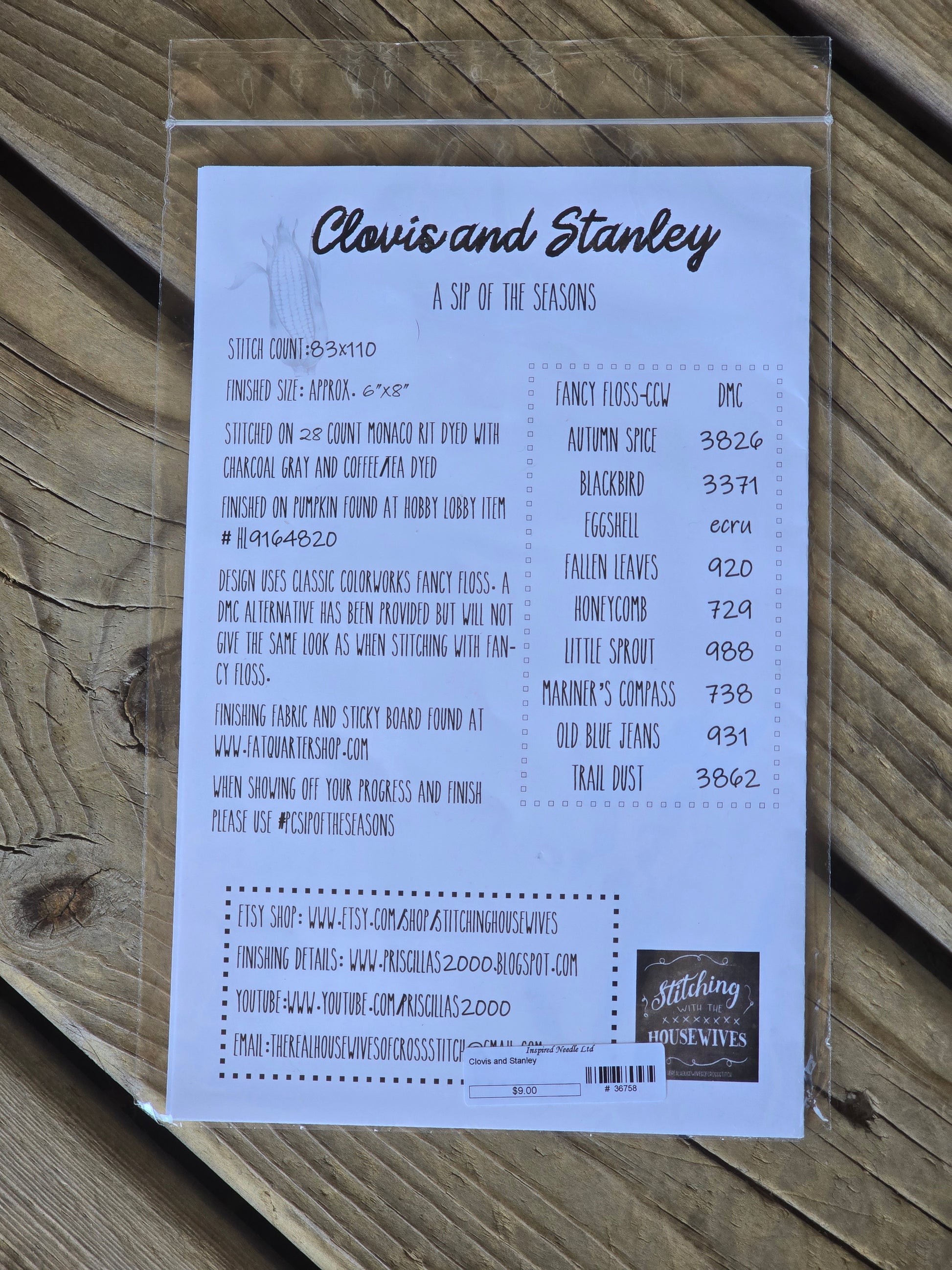 Stitching with the Housewives - A Sip of the Seasons - Clovis and Stanley - Cross Stitch Pattern