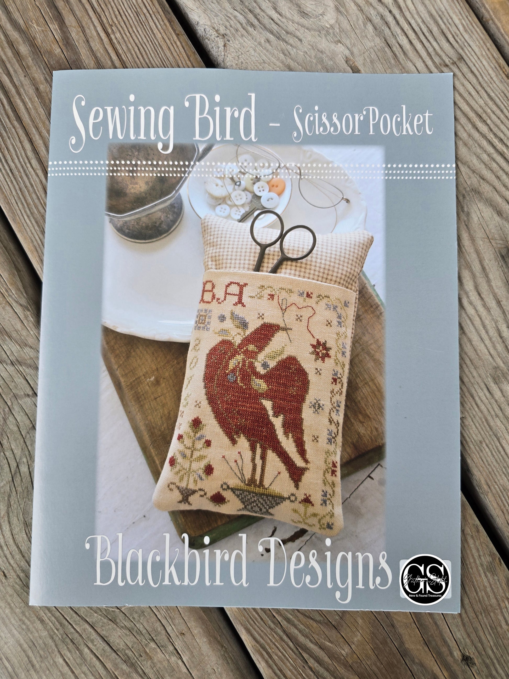 Blackbird Designs - Sewing Bird - Scissor Pocket - Cross Stitch Pattern