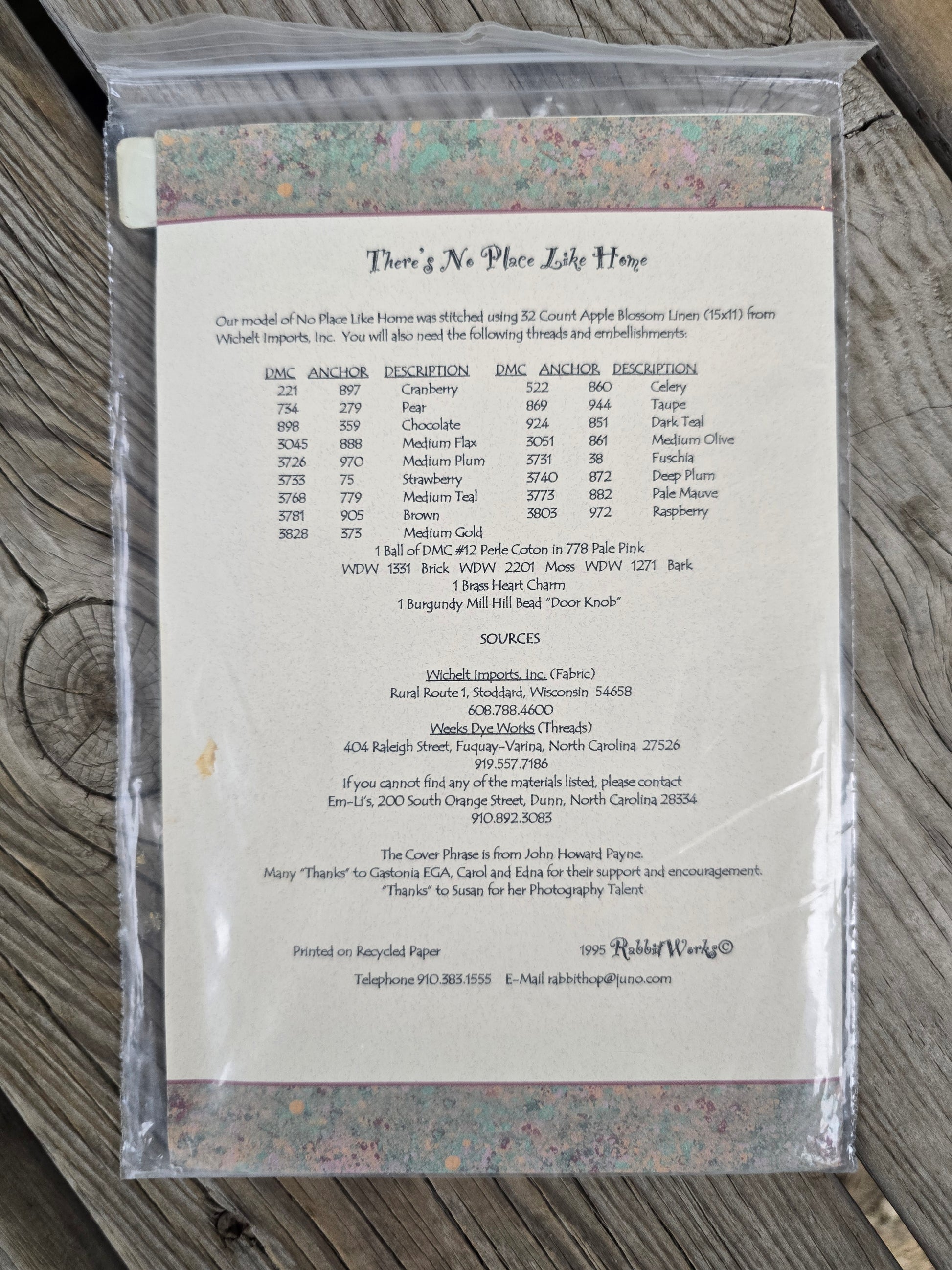 There's No Place Like ahome cross stitch pattern. RabbitWorks 1995. Estate find. Like new in package. Appears unused.