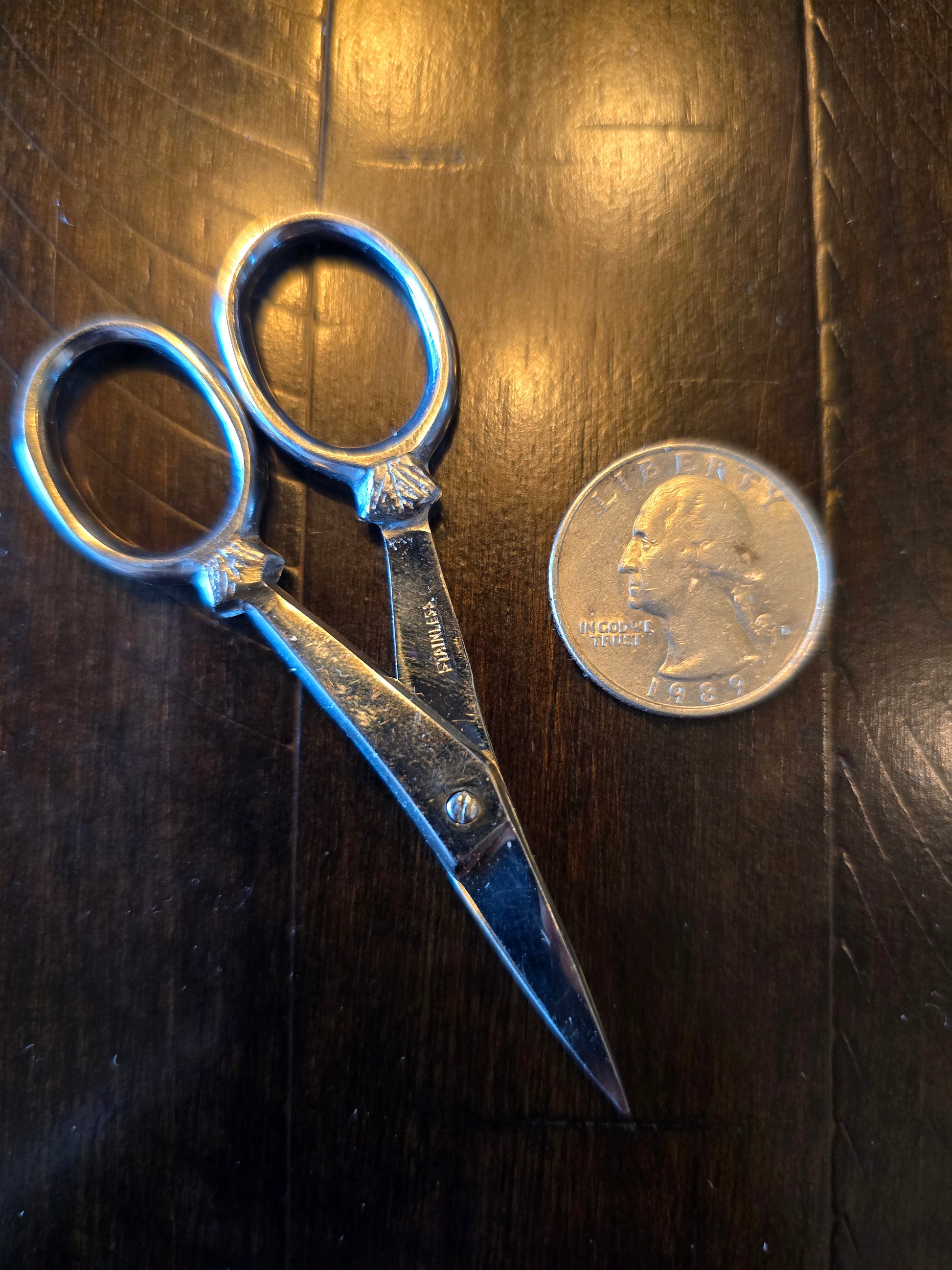 Ornate Stainless Steel Embroidery Scissors. Stamped Pakistan. Size: 3.25" long. Estate find. Good condition.