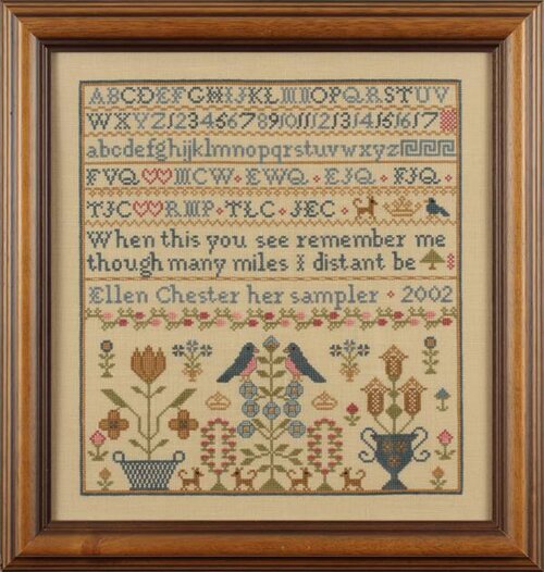 When This You See cross stitch sampler pattern. With My Needle 2003. Adapted by Ellen Chester from Susie Wade’s 1892. Stitch count: 165 W x 180H. Stitch size: 10.25”W x 11.25”H. Estate find. Like new in package.